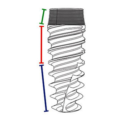 The thread with the concave profile has an apical-coronal incremental thickness DSST (Double Stressless Sharp Thread) which together with a descending concave profile between the threads, generates a gentle and progressive vertical and horizontal bone compaction.