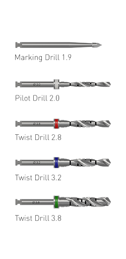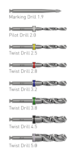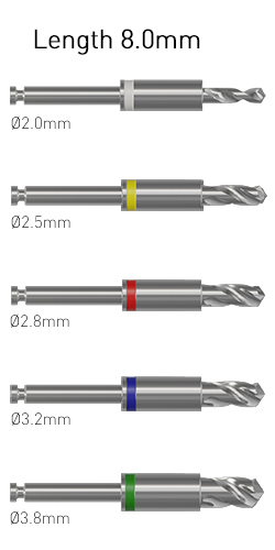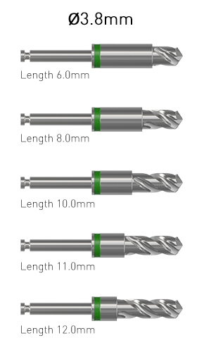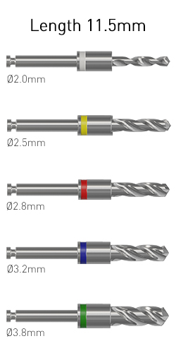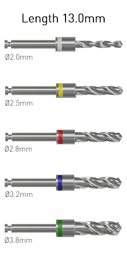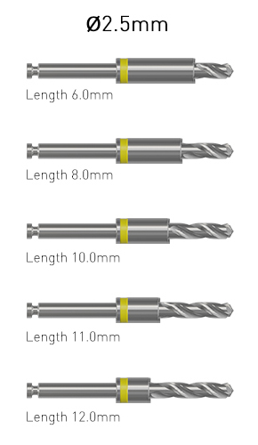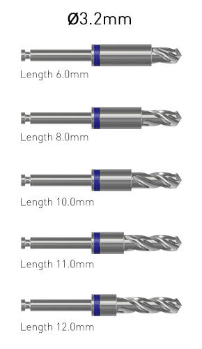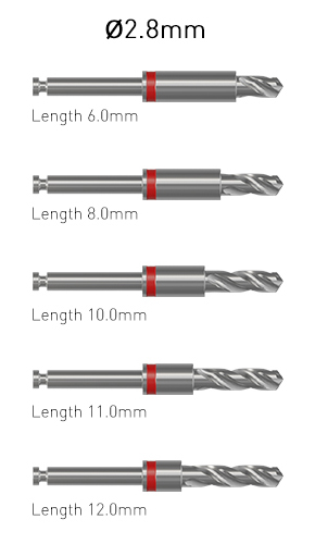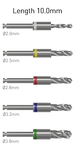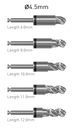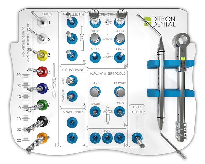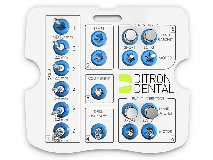 The Ditron kit contains a separate drill for each diameter and length of implants.