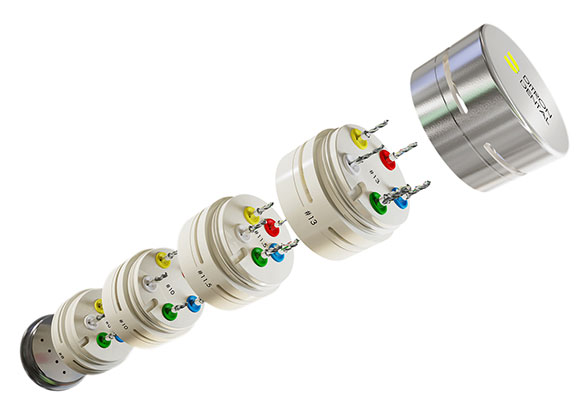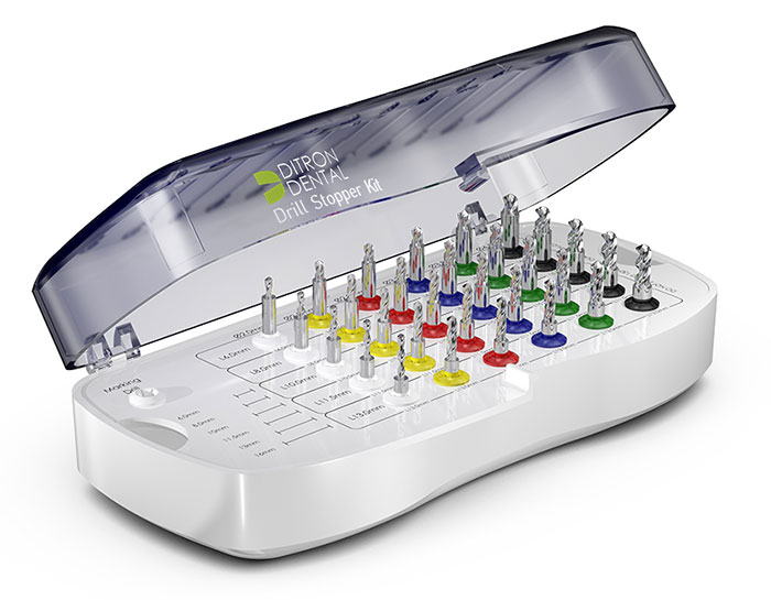 The Ditron integral drill stopper kit is designed to streamline the clinician’s drilling process. Each drill contains an integral stopper which prevents over-drilling and eliminates the need to carefully follow drill depth markings while enhancing procedure safety and avoiding possible drill depth errors.